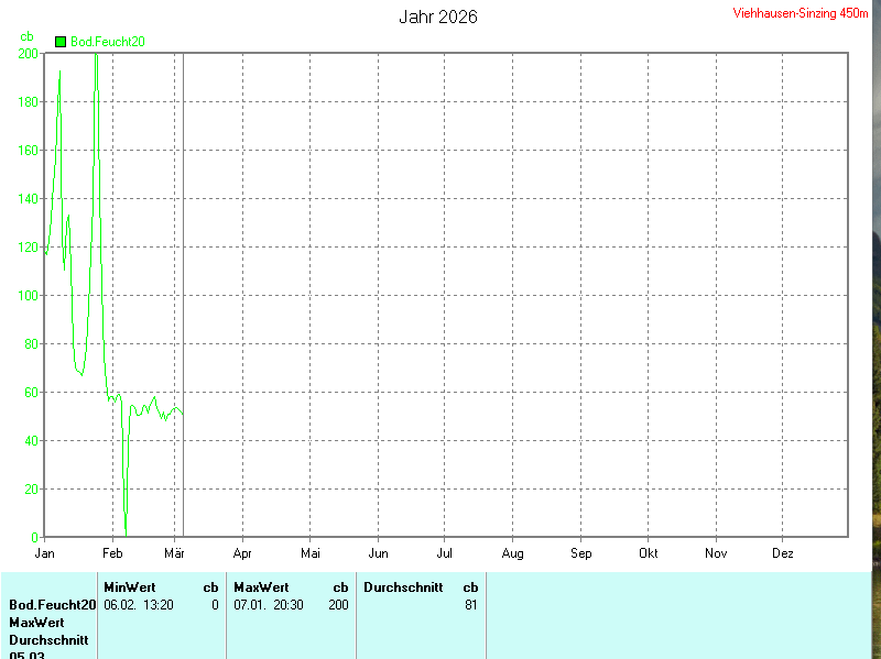 | Die Bodenfeuchte wird in Zentibar (cb), in einem Bereich von 0 bis 200 gemessen. |
